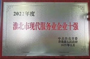 淮北市建投商貿(mào)有限公司榮獲“淮北市現(xiàn)代服務(wù)業(yè)企業(yè)10強(qiáng)”稱號(hào)