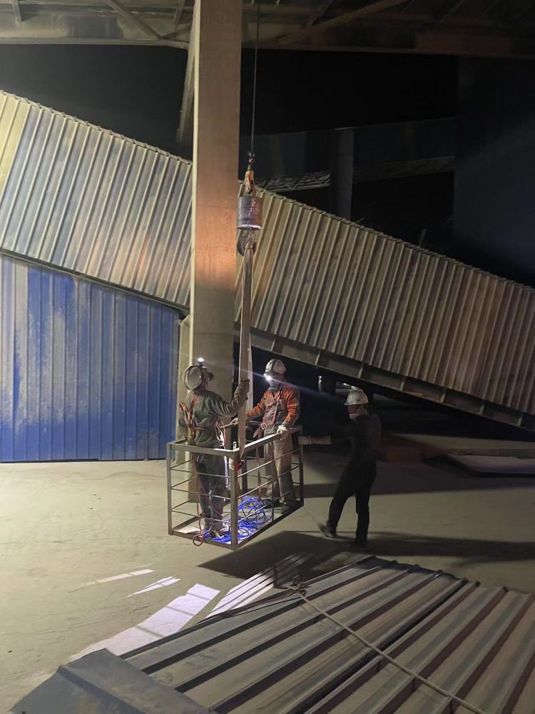 此次設(shè)備搶修攻堅(jiān)戰(zhàn)可謂是時(shí)間緊、任務(wù)重,由于空間狹小,不僅給焊接工作帶來極大的難度,而且危險(xiǎn)性極大,需要長(zhǎng)時(shí)間保持一個(gè)姿勢(shì),有的員工全身僵硬仍在咬牙堅(jiān)持,再加上夜間施工能見度低,精神易疲憊等等諸多不利因素也給整個(gè)搶修工作帶來了極大的困難!