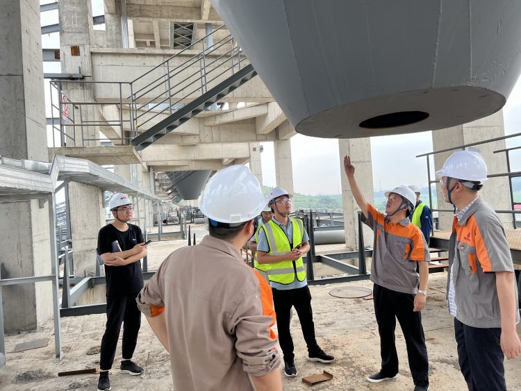 劉鵬總經(jīng)理一行先后對儲存發(fā)運(yùn)B區(qū)鋼結(jié)構(gòu)、儲存發(fā)運(yùn)A區(qū)至B區(qū)廊道、三篩至儲存發(fā)運(yùn)區(qū)鋼結(jié)構(gòu)等區(qū)域的安全生產(chǎn)管理、現(xiàn)場施工作業(yè)、已完工工程安全質(zhì)量等方面進(jìn)行了仔細(xì)查看和詳細(xì)了解,并與現(xiàn)場管理人員進(jìn)行深入交流。