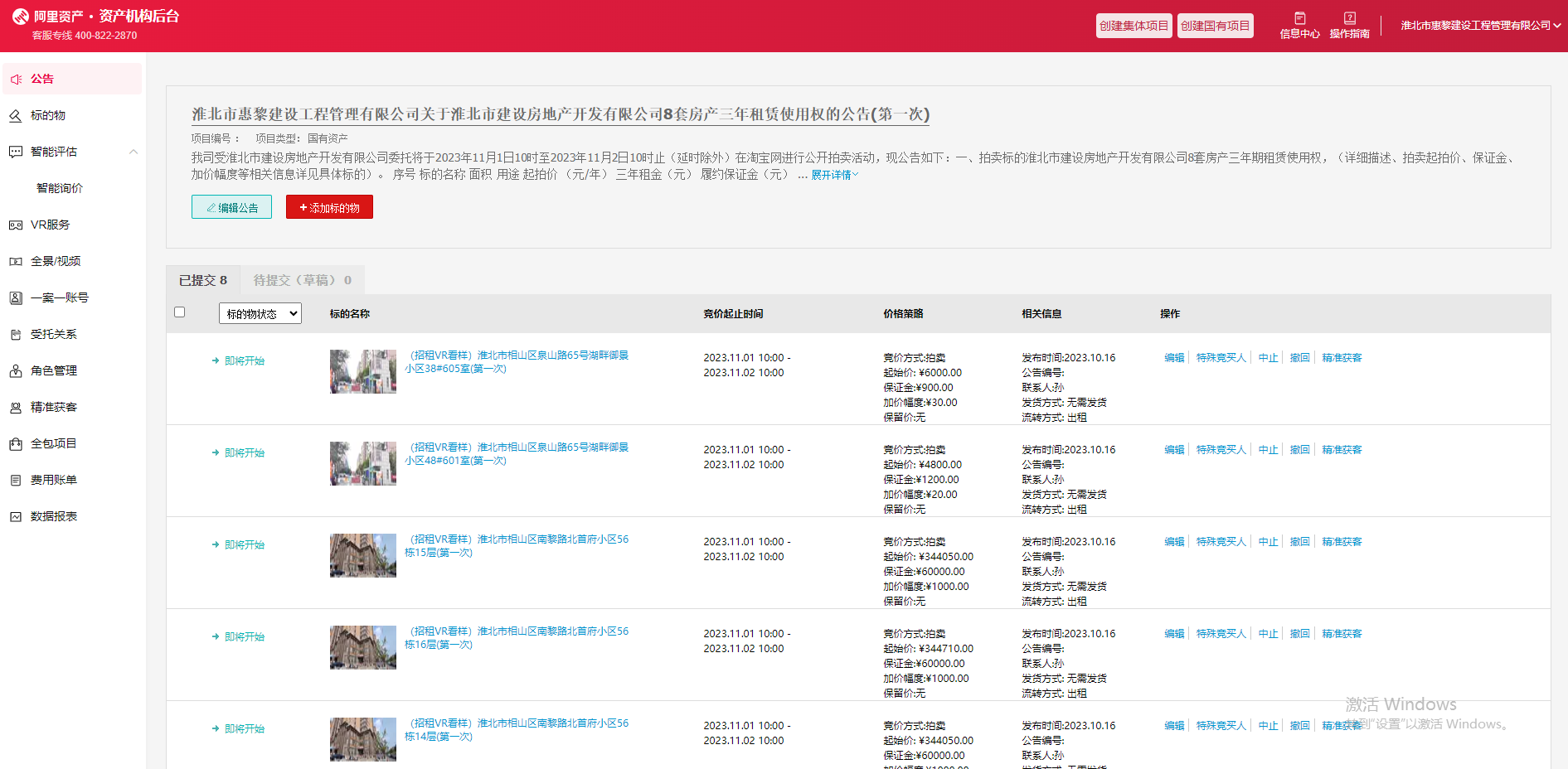 為盤活集團(tuán)公司國(guó)有資產(chǎn),確保國(guó)有資產(chǎn)保值增值,淮北市惠黎建設(shè)工程管理有限公司積極對(duì)接阿里平臺(tái),完成入駐流程。成功發(fā)布淮北市建投房地產(chǎn)開發(fā)有限公司8處房產(chǎn)三年期租賃權(quán)掛網(wǎng)拍租。通過(guò)制定拍賣方案,對(duì)標(biāo)的物制作VR虛擬現(xiàn)實(shí),讓意向競(jìng)買人多方位了解標(biāo)的物詳情。