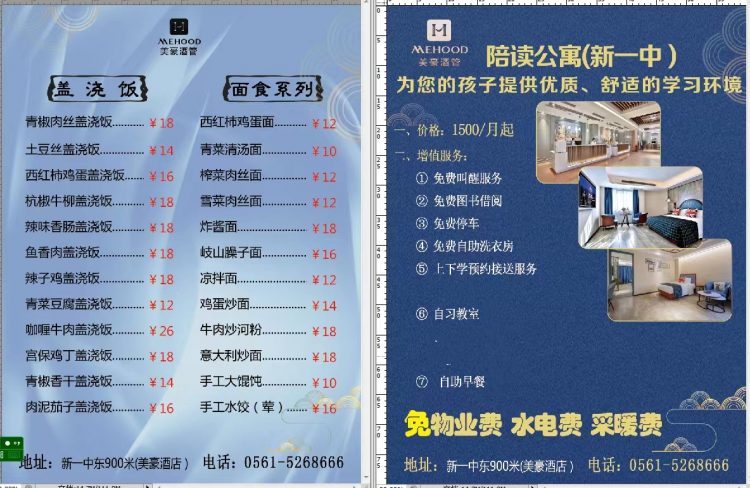 利用美豪酒店地理、環(huán)境優(yōu)勢(shì),結(jié)合新一中學(xué)生需求,為學(xué)生用心打造“三免、七大”增值服務(wù)陪讀房方案,既免費(fèi)提供水電、采暖、物業(yè)、停車服務(wù),還結(jié)合學(xué)生需求,免費(fèi)提供打印、叫醒、圖書(shū)借閱、自助洗衣等優(yōu)質(zhì)增值服務(wù);同時(shí)為緩解家長(zhǎng)送學(xué)壓力,酒店提供上下學(xué)接送服務(wù)、自習(xí)教室服務(wù)、自助早餐服務(wù)等。美豪酒店配備24小時(shí)安保巡邏、全天值守客房管家,為學(xué)生提供安全、優(yōu)質(zhì)、舒適的學(xué)習(xí)及住宿環(huán)境。