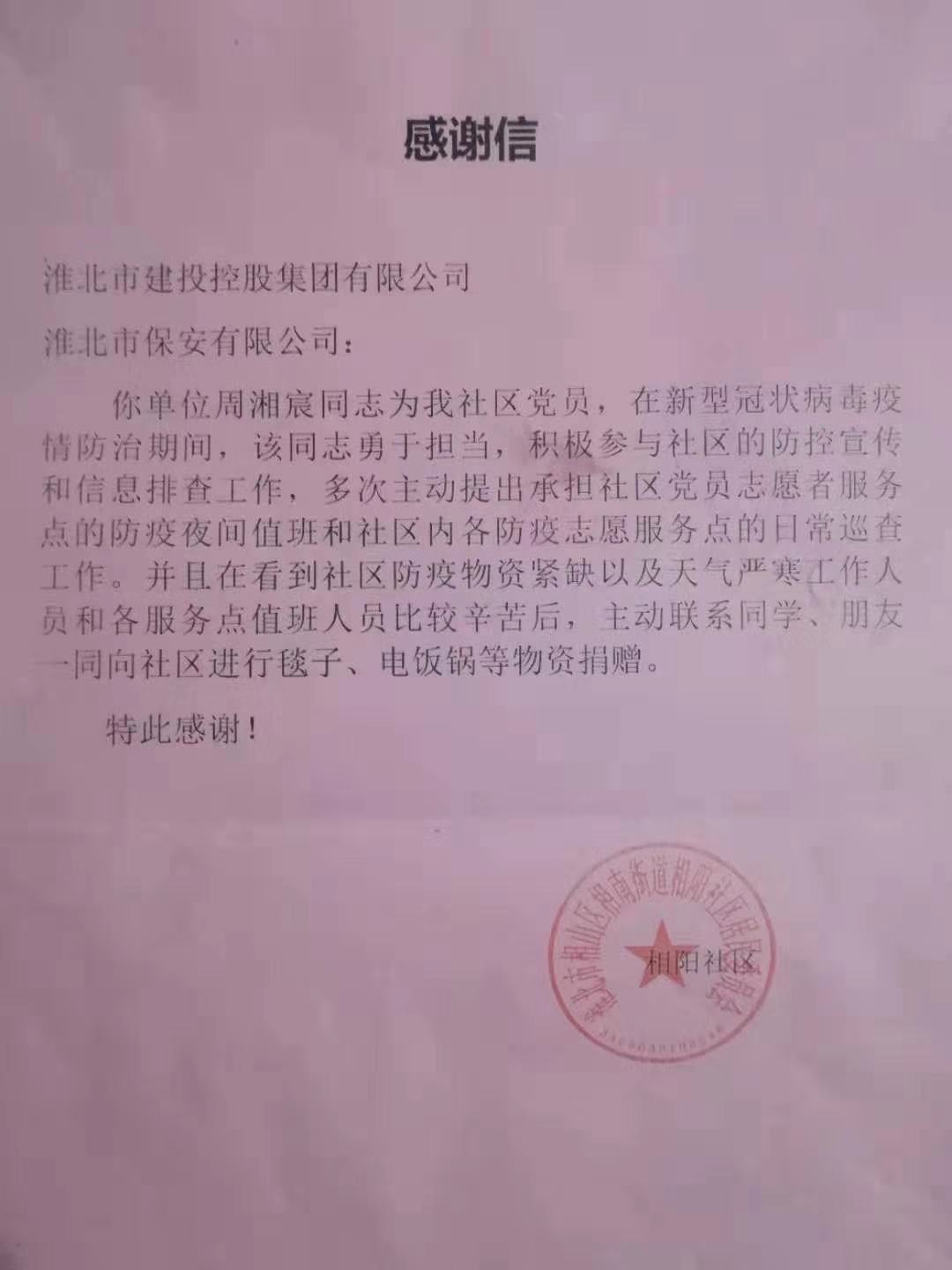 黨員“三報道”期間,白天工作時間在單位值班,統(tǒng)籌春節(jié)假期和延期上班期間的各項日常運(yùn)作工作,下班后積極幫助居住地社區(qū)逐樓逐戶進(jìn)行新冠病毒防控宣傳、挨家挨戶開展返淮人員信息排查;并且?guī)е瑸辄h員的妻子一同第一時間向社區(qū)報到,多次向社區(qū)主動提出承擔(dān)夜間防疫責(zé)任,執(zhí)行黨員志愿服務(wù)點夜間值守和日常巡查工作,成為奔赴抗疫前線的夫妻檔“逆行者”。