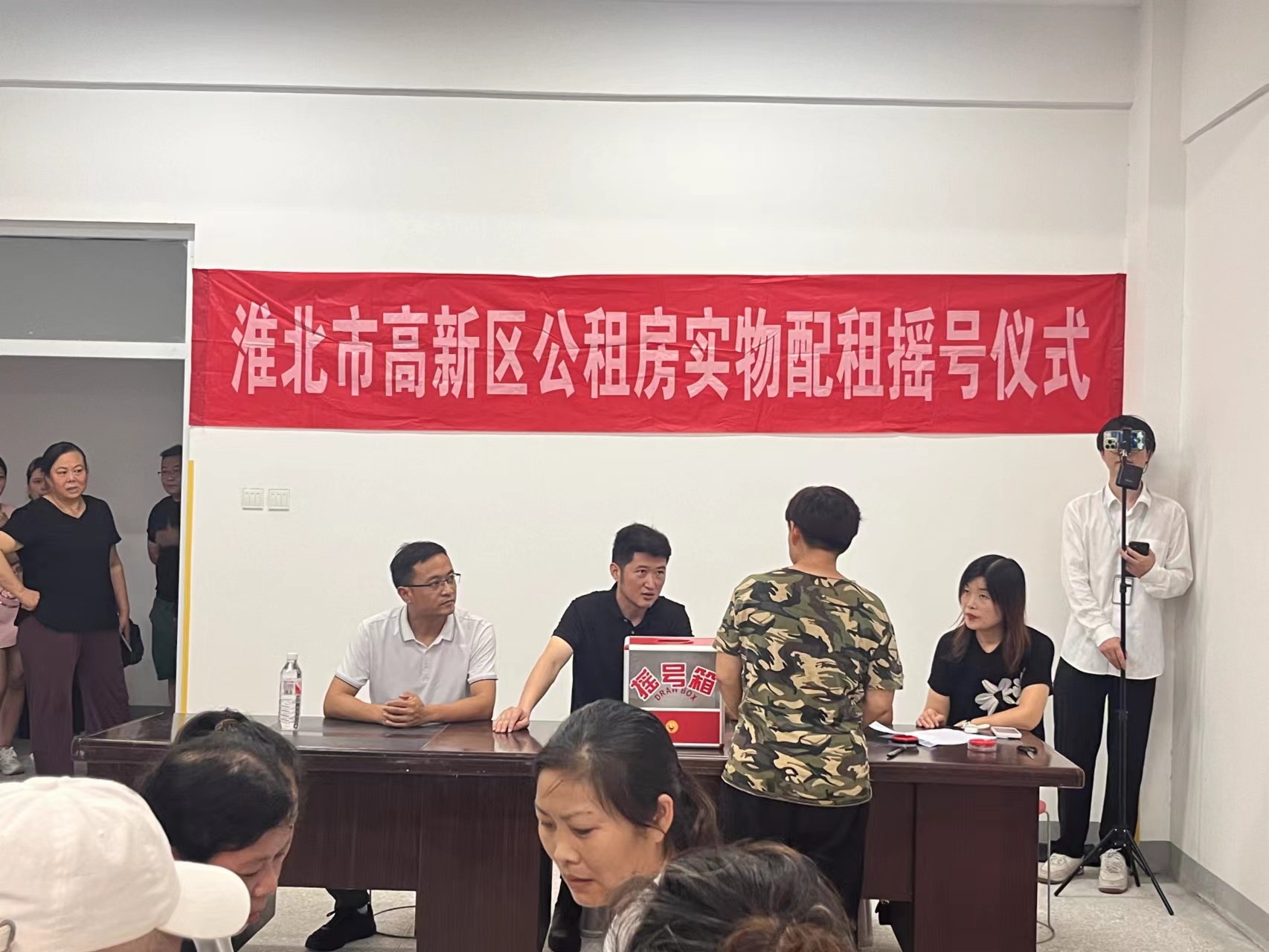2024年7月17日,淮北市高新區(qū)公租房實物配租公開搖號儀式在龍湖新村小區(qū)舉行,通過本次公租房實物配租,37戶園區(qū)住房困難職工家庭圓住房夢。市高新區(qū)國土規(guī)劃局、保障房公司及建投物業(yè)相關(guān)負責人參加活動。