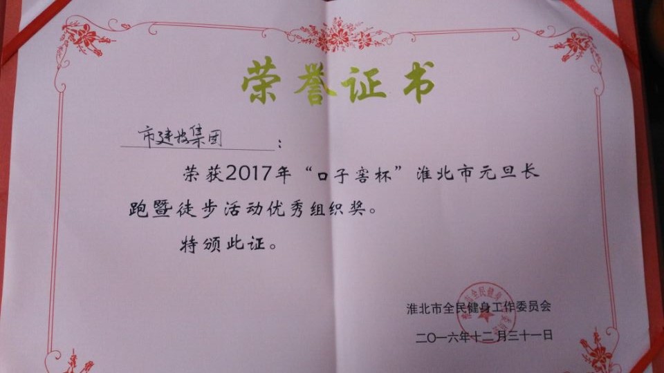 我們?cè)谶\(yùn)動(dòng)中迎來(lái)新的一年,在運(yùn)動(dòng)中精神百倍地向新的希望邁進(jìn)?;顒?dòng)結(jié)束后,員工們雖都大汗淋漓,但個(gè)個(gè)都精神煥發(fā),紛紛表示在2016的最后一天,以萬(wàn)人長(zhǎng)跑的形式迎接嶄新的一年很有意義,讓人身心愉快。在大家的共同努力下,市建投集團(tuán)獲得“2017年‘口子窖杯’淮北市元旦長(zhǎng)跑暨徒步活動(dòng)優(yōu)秀組織獎(jiǎng)”,進(jìn)一步激發(fā)了集團(tuán)公司員工奮發(fā)向上的精神,將更好的以健康的體魄和良好的精神風(fēng)貌投身到工作中去,推進(jìn)集團(tuán)公司2017年新工作的全面發(fā)展。