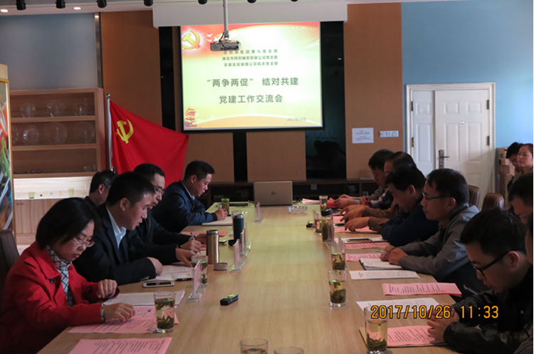 10月26日,同創(chuàng)融資擔(dān)保黨支部與安徽省信用擔(dān)保集團有限公司第九黨支部及安徽省金冠玻璃有限責(zé)任公司機關(guān)黨支部,在安徽省金冠玻璃有限責(zé)任公司黨員活動室開展“兩爭兩促”,結(jié)對共建黨建工作交流活動。