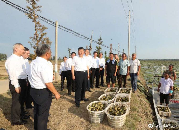 習(xí)近平總書記18日赴安徽考察調(diào)研。當(dāng)天下午,他先后來到阜陽市阜南縣王家壩閘、紅亮箱包有限公司、蒙洼蓄洪區(qū)曹集鎮(zhèn)利民村西田坡莊臺,察看淮河水情,走進田間地頭,了解當(dāng)?shù)胤姥淳葹?zāi)和災(zāi)后恢復(fù)生產(chǎn)等情況,看望慰問受災(zāi)群眾。(文字記者:張曉松 攝影記者:鞠鵬 王曄)