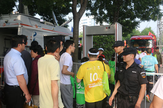 13日凌晨5:30分,負(fù)責(zé)市府廣場周邊區(qū)域的安保人員全部到崗。運(yùn)動(dòng)員入口安全檢查、重要部位值守、秩序維持、車輛指引、賽道沿線封閉防控等安保工作有序進(jìn)行。