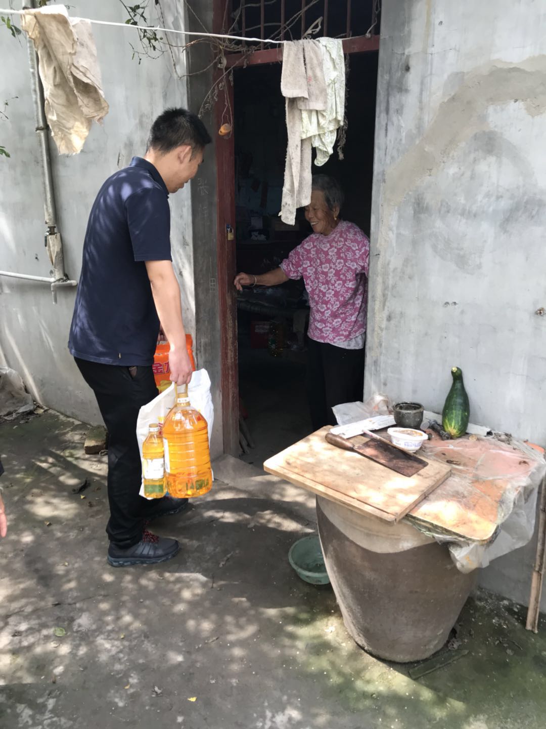 中秋來臨之際,家家忙團圓。為貫徹黨和國家對貧困人員的方針政策,彰顯社會主義的優(yōu)越性,東盛公司采購了過節(jié)所需的米、面及食用油,送至黃張氏家中。黃張氏對于東盛公司幫扶小組成員的到來表示熱烈歡迎。