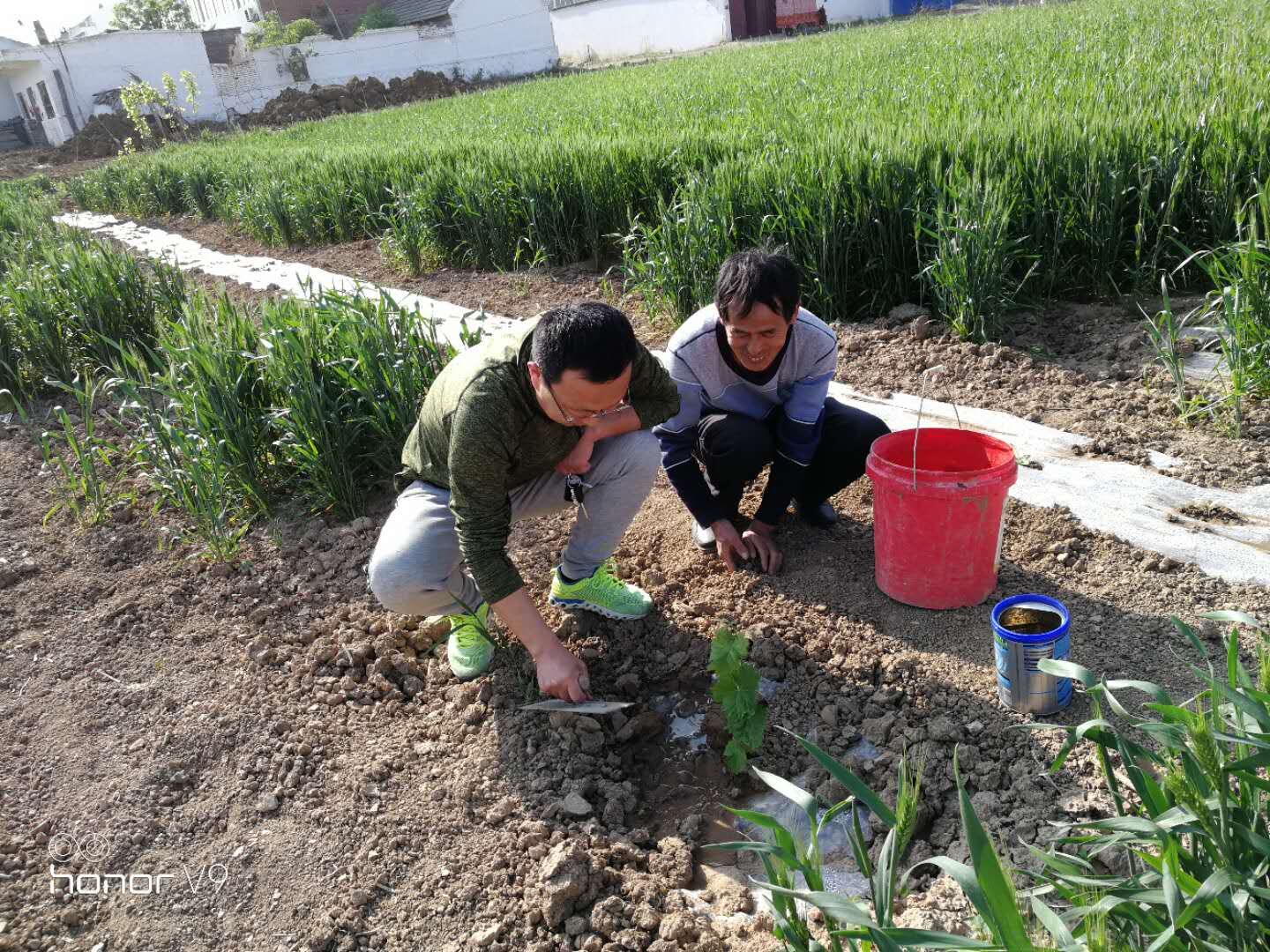 眼下春光正好,正是為果樹苗追肥除草的好時節(jié)。4月26日,城泊公司幫扶小組趕赴火神廟村扶貧戶家中,為已經(jīng)種下的100株扶貧葡萄樹苗進(jìn)行了施肥除草。