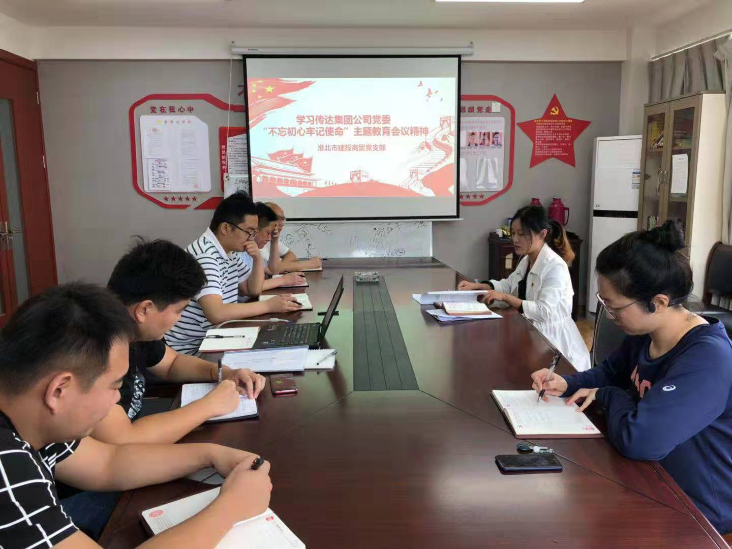 會議傳達(dá)了集團公司“不忘初心、牢記使命”主題教育工作會的會議精神,學(xué)習(xí)了《淮北市建投集團黨委關(guān)于開展“不忘初心、牢記使命”主題教育的實施方案》,并結(jié)合實際,討論商貿(mào)黨支部“不忘初心、牢記使命”主題教育實施措施初步方案。