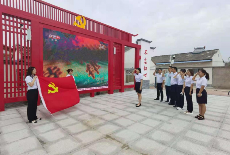 “我志愿加入中國共產(chǎn)黨,擁護(hù)黨的綱領(lǐng),遵守黨的章程……”6月25日,相山區(qū)鐘樓鄉(xiāng)黨群活動廣場,6名新黨員代表佩戴黨徽,舉起右手,握緊拳頭,在領(lǐng)誓人的帶領(lǐng)下,面向黨旗,莊嚴(yán)宣誓,雄厚的宣誓聲在廣場上久久回蕩。