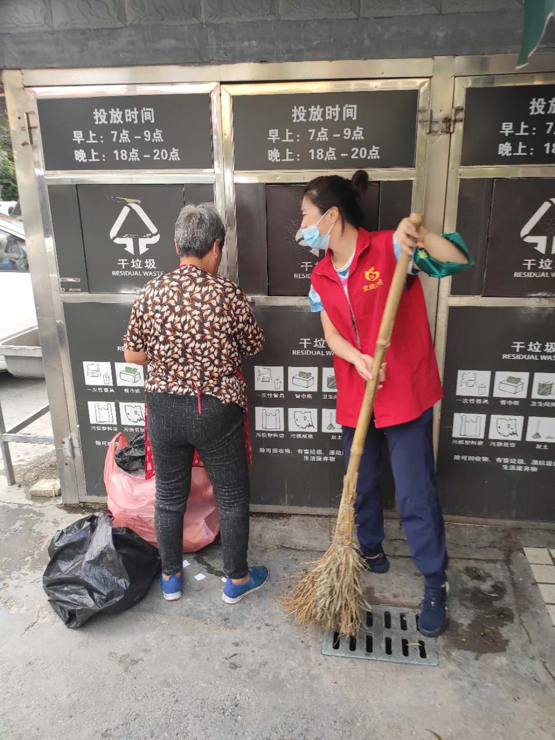 黨員志愿者們通過發(fā)放垃圾分類指導手冊,向居民介紹垃圾分類和垃圾亂倒的危害,宣傳垃圾分類的意義、類別和方式,詳細介紹四類垃圾所對應的性質及具體種類,引導居民們正確進行垃圾分類。黨員志愿者們及時清掃居民投放垃圾時掉落的垃圾,保持小區(qū)環(huán)境的衛(wèi)生整潔。