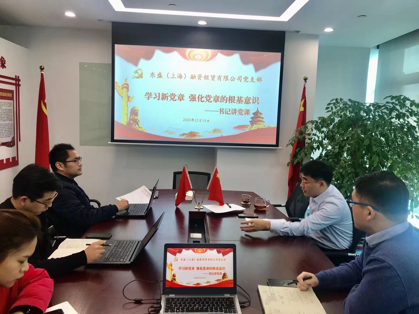 12月14日上午,東盛融資租賃公司黨支部在黨員活動室開展了以“學習新黨章,強化黨章的根基意識”為主題的黨課學習活動,由支部書記王智授課,全體黨員參加。