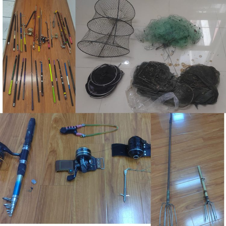 行動(dòng)中,工作人員發(fā)現(xiàn)并沒(méi)收了偷釣者使用的魚竿共計(jì)70余把,彈弓射魚器10余把,甲魚捕捉器20余個(gè),撒網(wǎng)2個(gè),魚叉2個(gè),這些魚竿不僅破壞了水生生物的生存環(huán)境,也嚴(yán)重威脅到游客的自身安全。同時(shí)清理了藏匿于水下的地籠20余個(gè),捕漁網(wǎng)300余米,這些非法捕魚工具嚴(yán)重破壞了水生態(tài)系統(tǒng)的平衡,是此次清理的重點(diǎn)對(duì)象。工作人員還勸離野游人員約570人次,通過(guò)現(xiàn)場(chǎng)講解、發(fā)放宣傳資料等方式,向他們普及了水域安全知識(shí)及保護(hù)生態(tài)環(huán)境的重要性。設(shè)立“珍愛生命,遠(yuǎn)離危險(xiǎn)水域;保護(hù)環(huán)境,從我做起”等溫馨提醒標(biāo)示牌,讓安全意識(shí)深入人心,得到大家的積極響應(yīng)和支持。