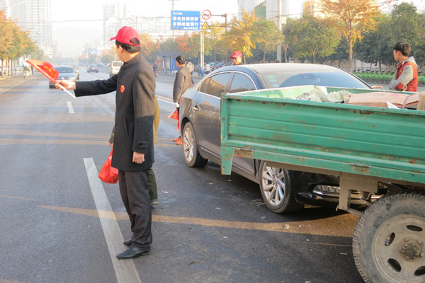 活動(dòng)現(xiàn)場(chǎng),志愿者們頭戴志愿者服務(wù)帽,手拿文明勸導(dǎo)小紅旗,協(xié)助交警維護(hù)交通秩序,處理突發(fā)交通事故,積極幫助尋找走失親人的外地老鄉(xiāng)聯(lián)系電臺(tái)、救助站……在活動(dòng)過(guò)程中,盡管氣溫很低,但是志愿者們對(duì)老弱殘者或路人都會(huì)提供熱情的幫助,為他們排憂解難。
