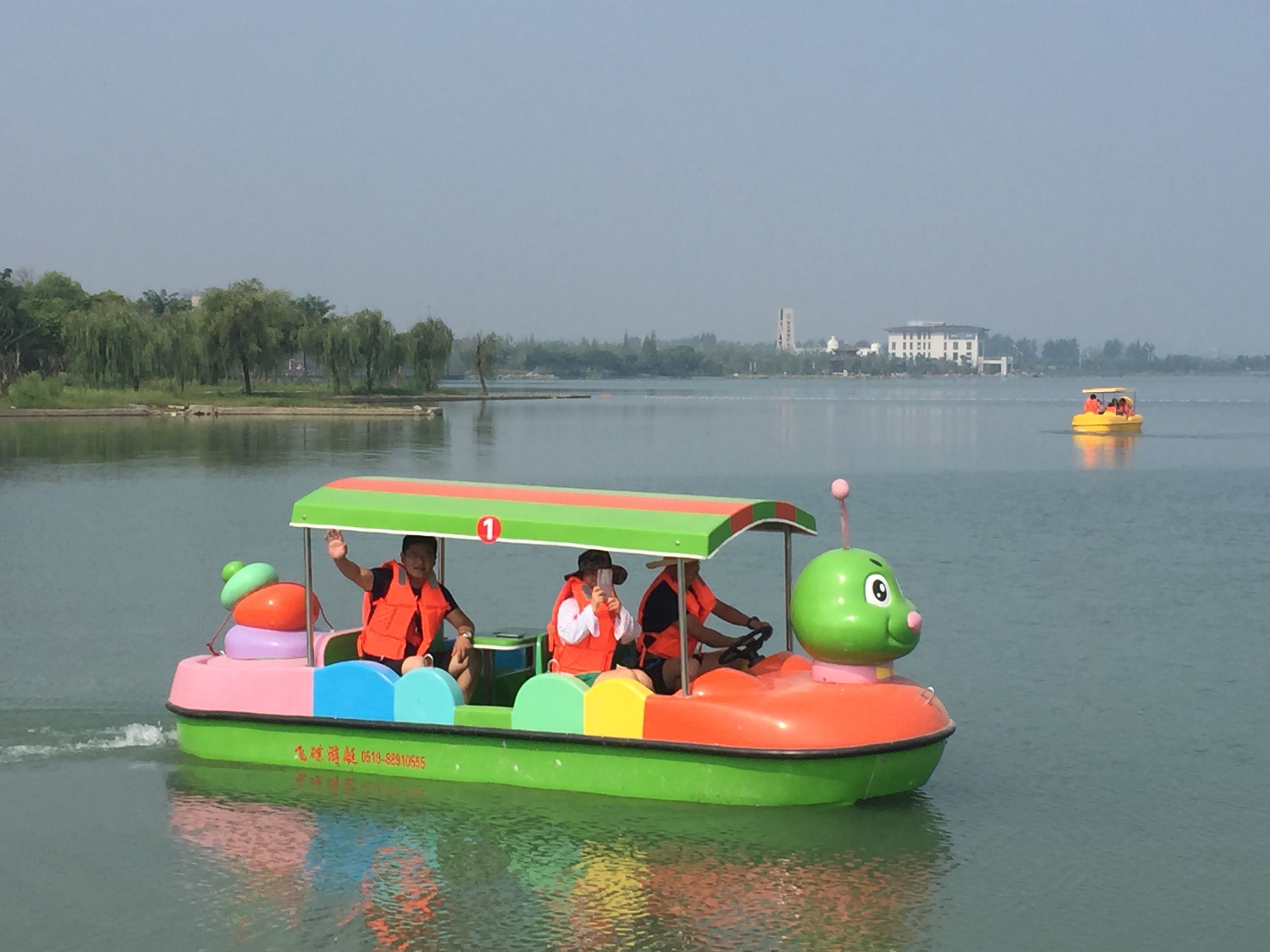 本次投入運(yùn)營(yíng)的20艘電動(dòng)游船有卡通昆蟲(chóng)系列、卡通大黃鴨系列、卡通汽車(chē)系列等,并有4人座、6人座供游客選擇。