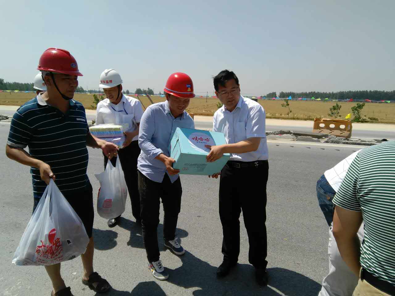 驕陽(yáng)似火,酷暑難耐。為感謝激勵(lì)奮斗在烈日中的一線員工,2017年5月27日,集團(tuán)黨委委員、副總經(jīng)理、交投公司總經(jīng)理張立哲帶領(lǐng)交投公司黨支部一行先后走訪S202收費(fèi)站項(xiàng)目部和高樓山石料廠項(xiàng)目部門,看望慰問(wèn)堅(jiān)守在高溫烈日下的一線員工。