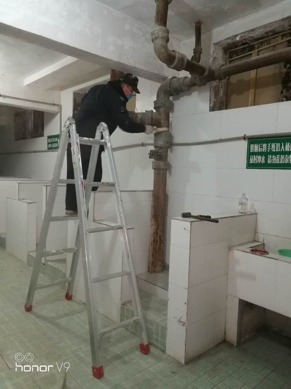 二中院內(nèi)的公廁從以前的破舊不堪到如今的整潔衛(wèi)生都離不開停車場班組的悉心維護(hù)。新年有新氣象,為了使二中公廁更潔凈更安全,讓來公廁方便的市民更安心,二中停車場班長馬毓森同志不畏寒冷,不怕臟,不怕累,為公廁內(nèi)裸露在外的管道作了除銹防腐處理并刷上油漆,以防管道年久失修發(fā)生泄露給市民帶來麻煩。