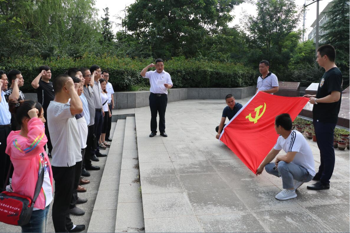 參加活動的全體黨員在烈士紀念碑前,向烈士紀念碑三鞠躬,深切緬懷烈士們的豐功偉績,深情瞻仰烈士紀念碑,向革命烈士致以深深的敬意。全體人員在革命烈士紀念碑前列隊向黨旗莊嚴宣誓,重溫入黨誓詞。