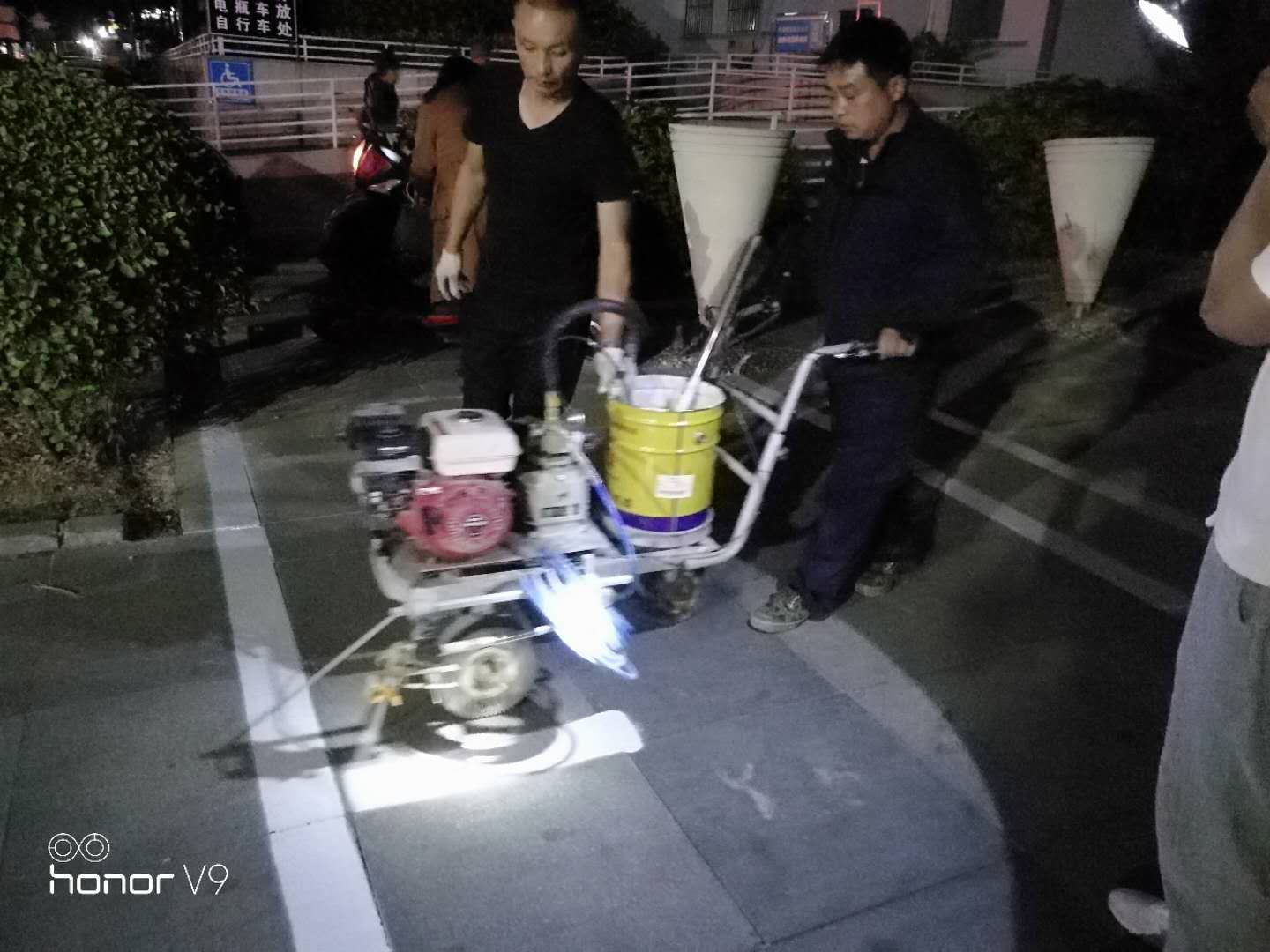 由于主城區(qū)停車泊位緊張、車輛停放密集,施工必須在停放車輛駛出清場后,才能進行。為了不影響市民停車避開停車高峰,公司工作人員需要在凌晨乃至半夜進行劃線任務。雖然辛苦,但是我們畫起線來一絲不茍,為了減少雨水對停車線的侵蝕,畫停車線時反復多次施劃增加耐久度,為了整齊美觀,施劃每一條線時都會用標尺認真的比量??此坪唵蔚膹兔鑴澗€工作,實際上仍存在很大的工作阻力,周邊商戶的不理解,甚至謾罵和投訴對我們工作人員的工作造成了很大的困擾,但是我們依舊積極協(xié)調(diào)、解釋和溝通,在國慶節(jié)前,圓滿的完成了復描任務,讓原本斑駁的車位線煥然一新。