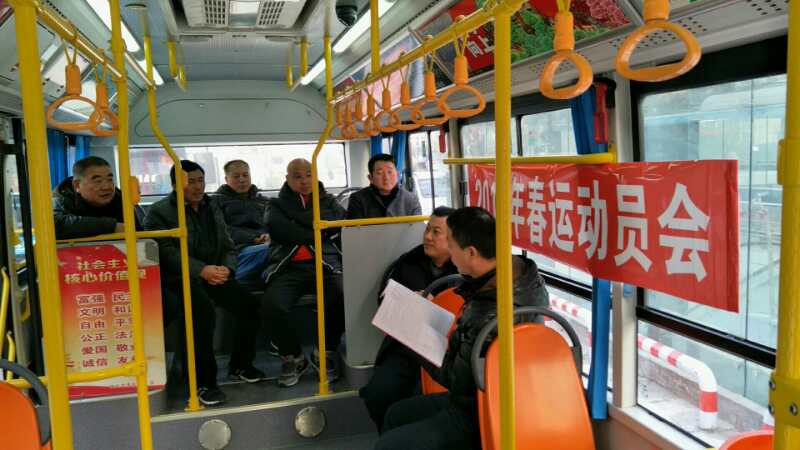2019年春運已經(jīng)啟動,公交第二分公司全體員工將放棄與家人團聚,同心協(xié)力、攻堅克難、千方百計保障公交路路暢通,務(wù)必打贏2019年安全生產(chǎn)第一仗,公交人將文明駕駛、規(guī)范操作、微笑迎客、熱情服務(wù),保障各地賓朋和市民百姓出行安全、方便、快捷,為市民度過喜慶、歡樂、祥和的新春佳節(jié)交上一份滿意的答卷。