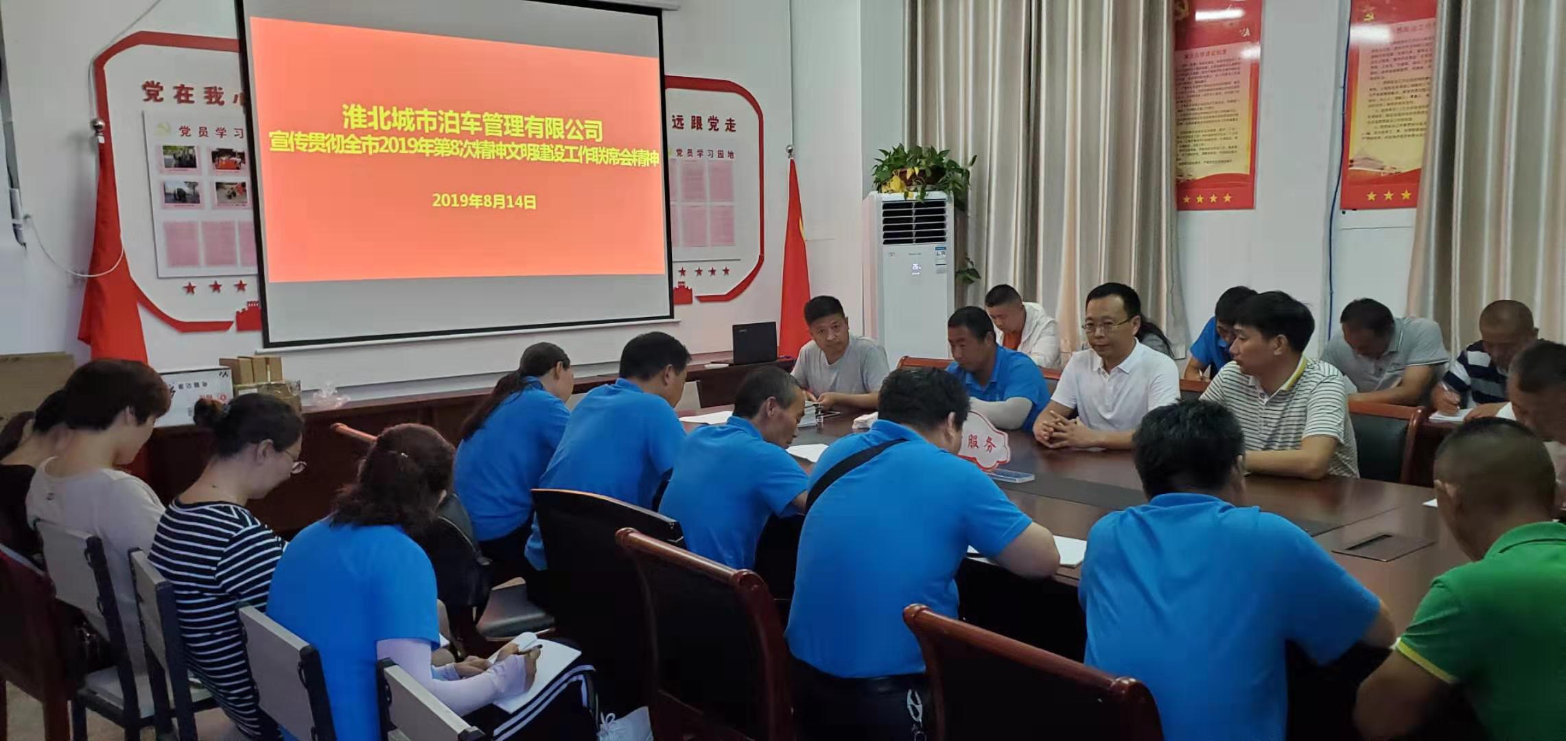 城泊公司迅速組織召開宣傳貫徹全市2019年第8次精神文明建設工作聯(lián)席會議精神專題會議